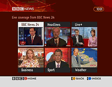 Die BBC bietet heute schon im Rahmen des Digitalen Fernsehens ein kostenloses On-Demand-Programm an, das sowohl über Antenne wie auch Kabel und Satellit verfügbar ist. Neben Nachrichten, Sport, Wetter, Entertainment sind auch interaktive Spiele und Umfragen über den herkömmlichen Fernseher möglich. Um als Zuschauer in Großbritannien vom Live-Programm auf die On-Demand-Ebene zu wechseln, betätigt man einfach den Roten Knopf auf der Fernbedienung. Es erscheint ein Menü, aus dem dann ausgewählt werden kann.
