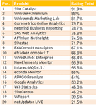 Marktführer Omniture zeigt dabei mit seinem Produkt 'Site Catalyst' erwartungsgemäß die stärksten Leistungen. Etwas überraschend ist dagegen das positive Abschneiden der Lösung des Berliner Unternehmens Webtrekk, das in der Bewertung noch vor den US-amerikanischen Premium-Lösungen WebTrends und Coremetrics liegt.