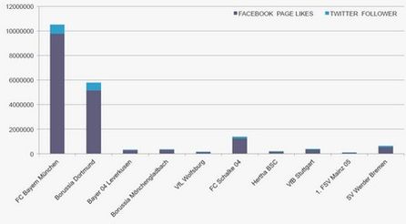 Alle 18 Bundesliga-Vereine verfügen über einen Twitter- und Facebook-Kanal, der aktiv gepflegt wird. Der Analyseanbieter Brandwatch hat in einer Studie aufgeschlüsselt, wie effektiv die Vereine mit ihrem Social-Mediaprogramm die Fans erreichen und welcher Verein wie viel Resonanz im Web erfährt.