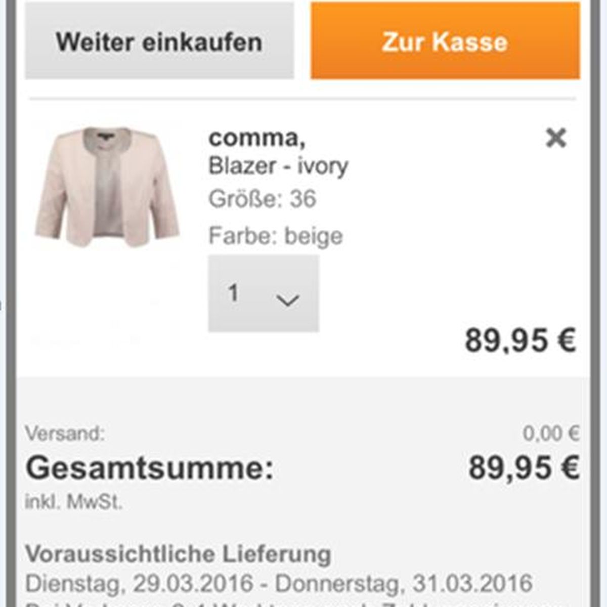 - Beim Call-to-Action sollten Sie auf eine klare Beschriftung, zum Beispiel „Zur Kasse“, angemessene Größe und farbliche Kennzeichnung achten!