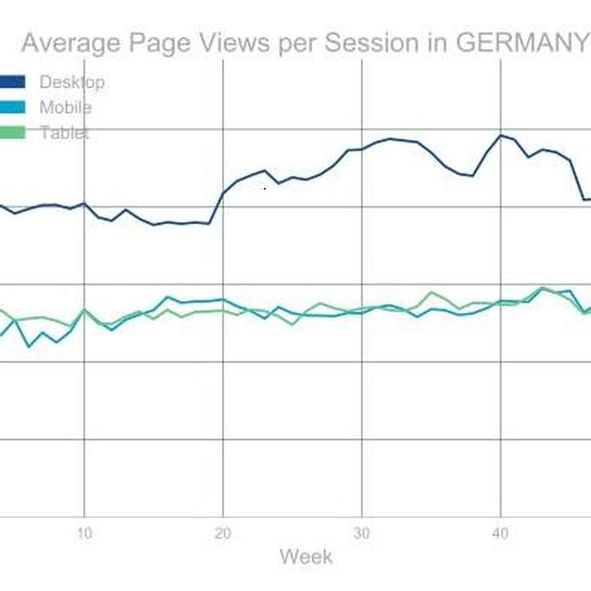 Bezogen auf die Session Duration folgt Deutschland dem internationalen Trend. Im ersten Quartal 2016 führte der Desktop klar im Nutzungsranking, gefolgt von Tablet und Mobile. Zum Ende des Jahres änderte sich das Nutzerverhalten stark und eine ähnliche Nutzungsdauer wurde auf allen Geräten gemessen.