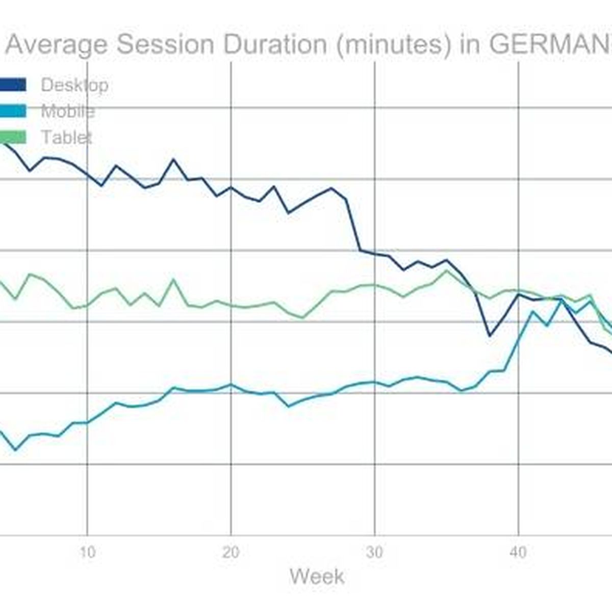 International nähern sich Internetnutzer bezüglich der durchschnittlichen Session Duration – sie gibt Auskunft, wie lange sich ein Benutzer in einer einzigen Sitzung mit einem Inhalt beschäftigt – geräteübergreifend einer Dauer von zwei Minuten an. Auf mobilen Geräten verbringen Nutzer zunehmend länger mit den Inhalten, während die Session Duration am Desktop-Computer zurückgeht. Trotz nachlassender Sitzungsdauer bleibt er jedoch das meistgenutzte Gerät.